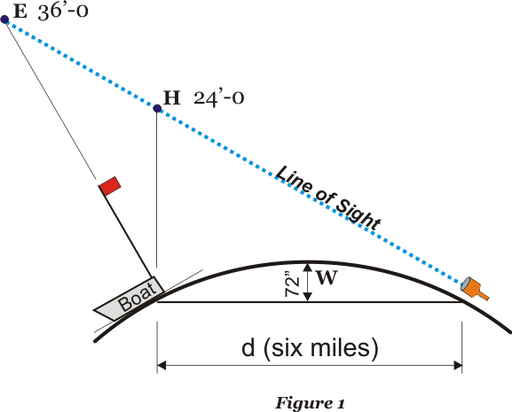 Figure 1 at right shows the geometry we expect on the curved Earth. Table 1 gives values for W, E, and H.