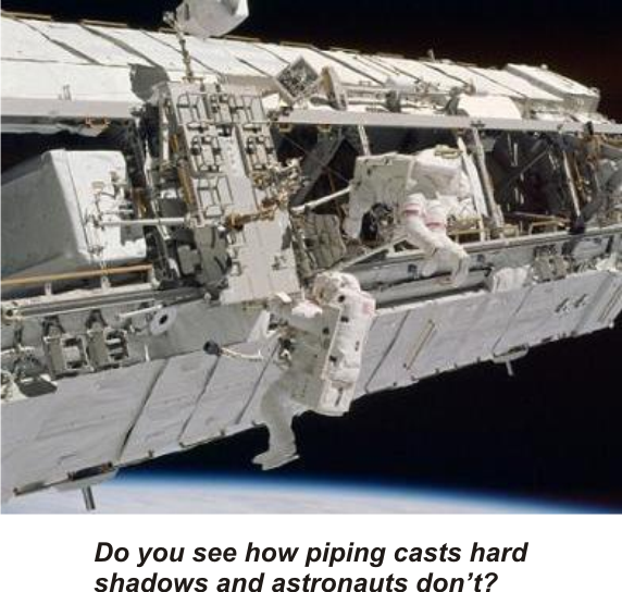 The engineering problems of the ISS are not trivial. Fortunately the gnarliest problems seem to be easily solved by the mathematically unassailable technique of arm-waving. Inasmuch as it is a given that orbital mechanics are not possible around a flat stationary Earth, the back story is of only passing interest, but so many people seem to believe in the ISS we may need to say more. NASA broadcasts from the ISS all the time and people give TV interviews from there. You see that light up there, that's the ISS.