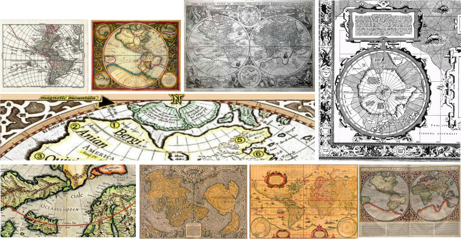 The mapmakers art is seen in progress in the image at top left. This map greatly predates aircraft images and the accuracy of the mapping of South America is impressive. In the unexplored North, we see land masses that correspond to the islands. There is an interesting looking island West of South America.