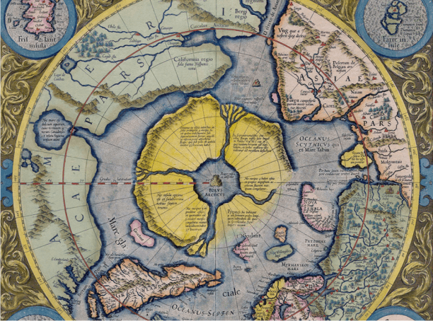 My globe shows only ice around the axle where the North Pole should be. Yet in older maps from Zeno, Mercator, Cabot and others, an assemblage of islands cradles an inland sea.