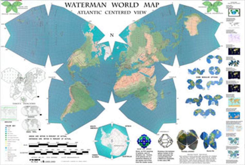 And here is an unusual variation on the famed AE map. This one wraps back and tries to show Antarctica as a continent, but there's a lot of empty space.