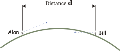 Alan and Bill are standing on the surface of the curved Earth at some distance d apart.
