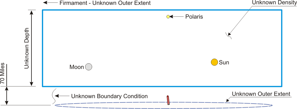 This is far short of a proof, and I have only begun to attempt material characterization of the firmament per se, but it leads to interesting speculations. For example, it may help to explain why the distant sun cannot be seen across the flat Earth.